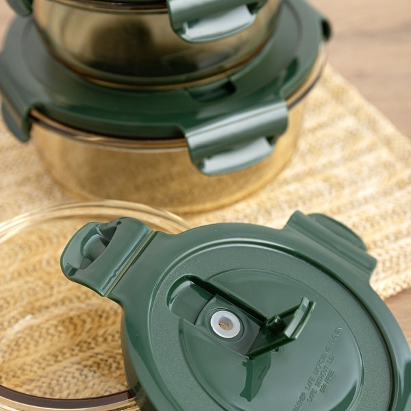 Das kreisförmige Design gibt dieser Lunchbox eine elegante Note, während die Farbkombination aus Grün und Gelb ihr ein lebendiges und ansprechendes Aussehen verleiht. Gefertigt aus hochwertigem Glas, sorgt sie für eine gesunde und geschmacksneutrale Aufbewahrung Ihrer Speisen, während sie gleichzeitig robust und langlebig ist.