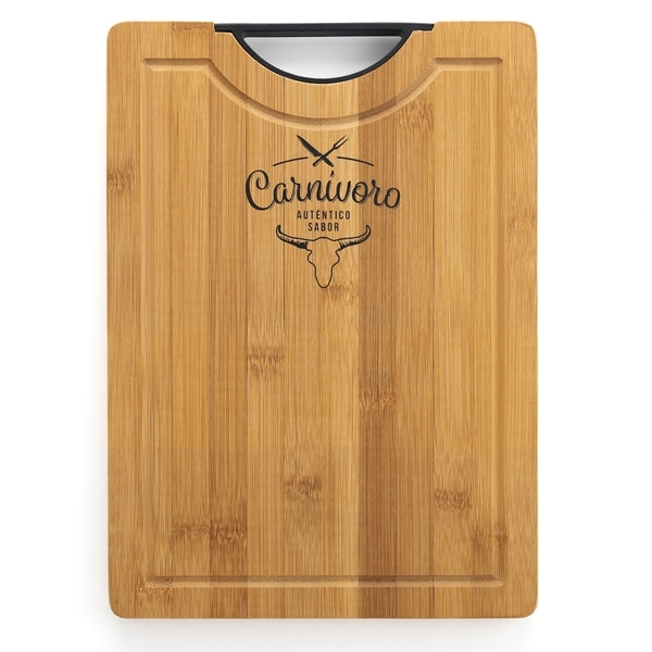 Mit dem Schneidebrett Quid Carnivoro Bambus (35 x 25 x 2 cm) bekommen Sie ein Schneidebrett das eine hochwertige Arbeitsoberfläche bietet und hygienischer durch Bambus ist. Durch die Härte des Werkstoffes Bambus, ist dieses Schneidebrett sehr widerstandsfähig gegenüber scharfen Messern. Es erhalt dadurch für lange Zeit sein frisches Aussehen. Gleichzeitig bewirken die Eigenschaften von Bambus, dass Keime und Bakterien schlechter an der Oberfläche haften bleiben können. Sie haben somit auch einen zuverlässigeren Reinigungsprozess nach der Zubereitung Ihrer Lebensmittel. Mit dem Stil an der oberen Seite des Schneidebretts haben Sie über das Loch am oberen Rand, dort eine Band durchzuziehen, um es anschließend in Ihrer Küche platzsparend an die Wand zu hängen. So kann das Schneidebrett auch optimal nach dem Reinigen an der frischen Luft trocknen.